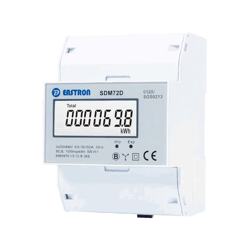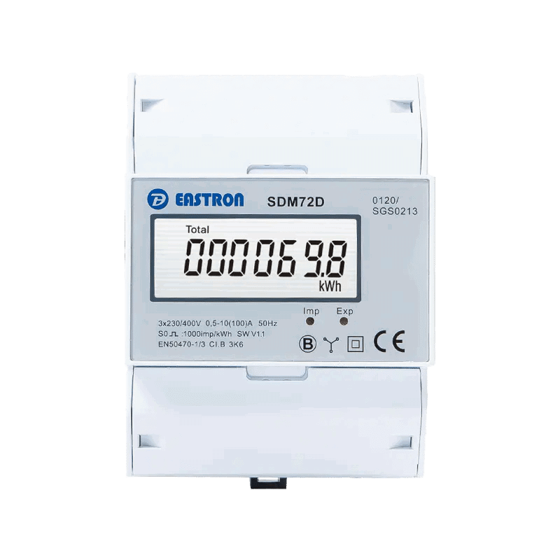 Het stroomverbruik of de opbrengst van driefasige netwerken meten en weergeven. Dat is waar de SDM72D-MID zich uitstekend voor leent. Deze energiemeter is direct (100A) aan te sluiten. De gemeten waardes, zowel import als export, zijn afleesbaar op het LCD-scherm met achtergrondverlichting.
